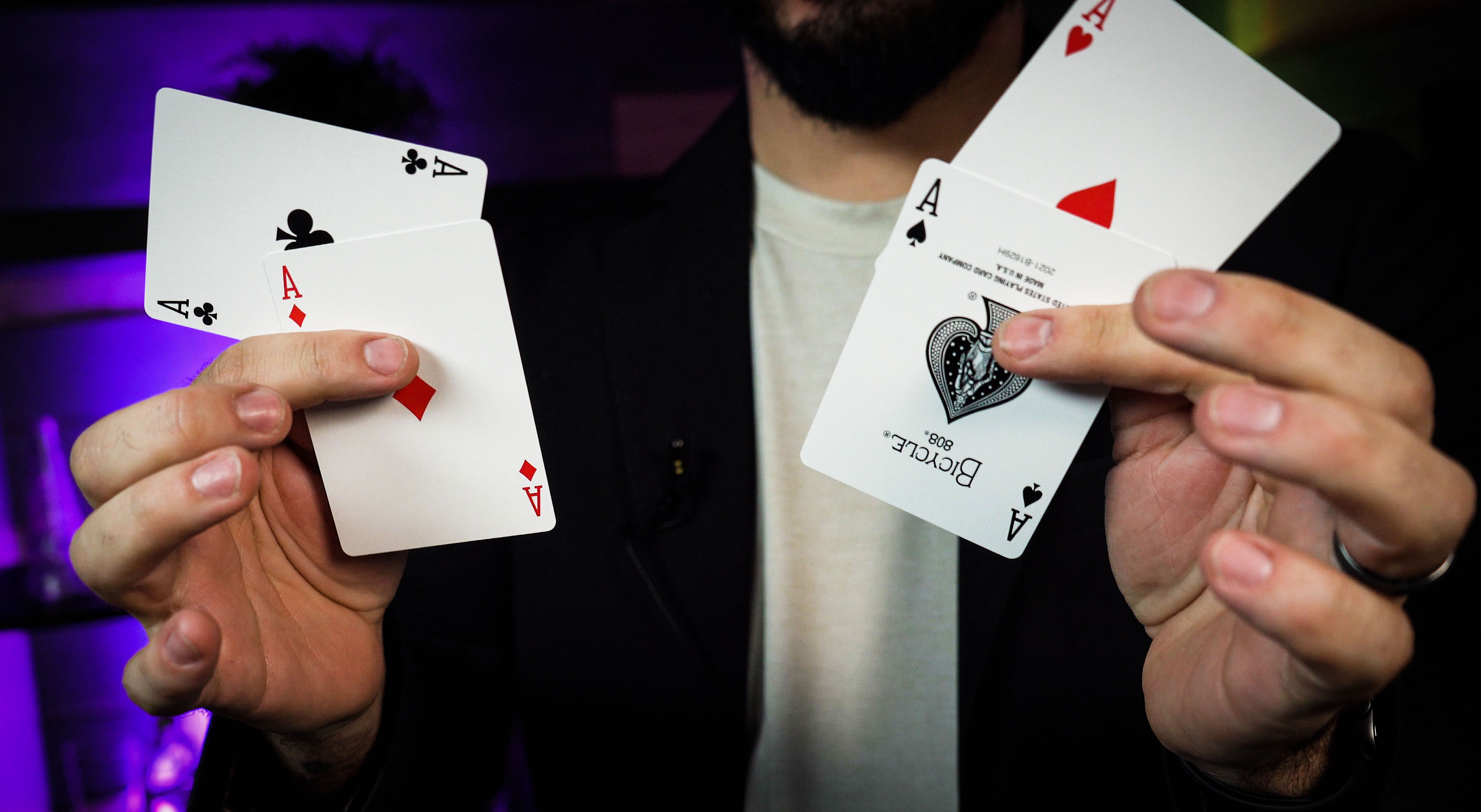 A devastating split-second, invisible switch. Switch cards right before your spectator's eyes.